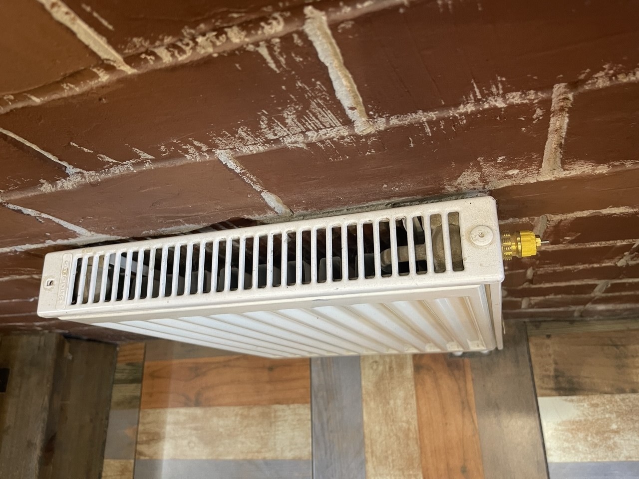 - Эффективность отопительного прибора низкая. Различные декоративные ниши или короба, которые частично или полностью закрывают отопительный прибор, нарушают конвективный поток и тем самым сильно снижают теплоотдачу отопительного прибора (пример на фото ниже). Снижают конвекцию не только декоративные панели и короба, но и мебель (шкафы, диваны) и даже плотные шторы. Также к нарушению конвекции могут привести ошибки при монтаже отопительного прибора - несоблюдение нужных для нормальной конвекции расстояний от низа, верха и стены до отопительного прибора (нижнее фото)